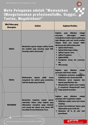 hasil dan dampak yang maksimal. layanan yang diberikan; dan